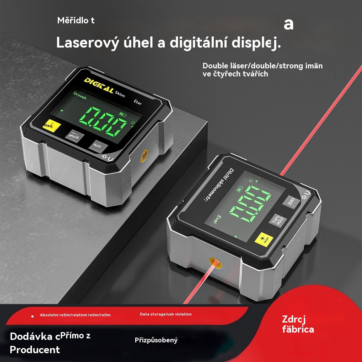 Oboustranná laserová vodováha a čtyřstranná magnetická přísavka