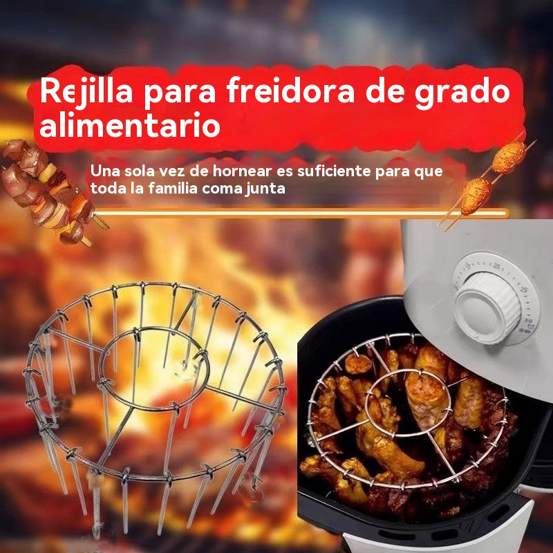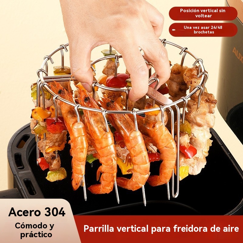 【💥Oferta por tiempo limitado】🍢🍖🍗Parrilla de acero inoxidable 304 con 24 brochetas, apta para freidoras de aire y hornos