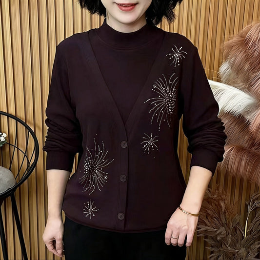 🔥🔥 【XL–5XL】Nowa kolekcja 2026 – zimowa luźna, uniwersalna bluzka z długim rękawem, zdobiona cyrkoniami