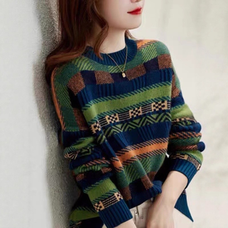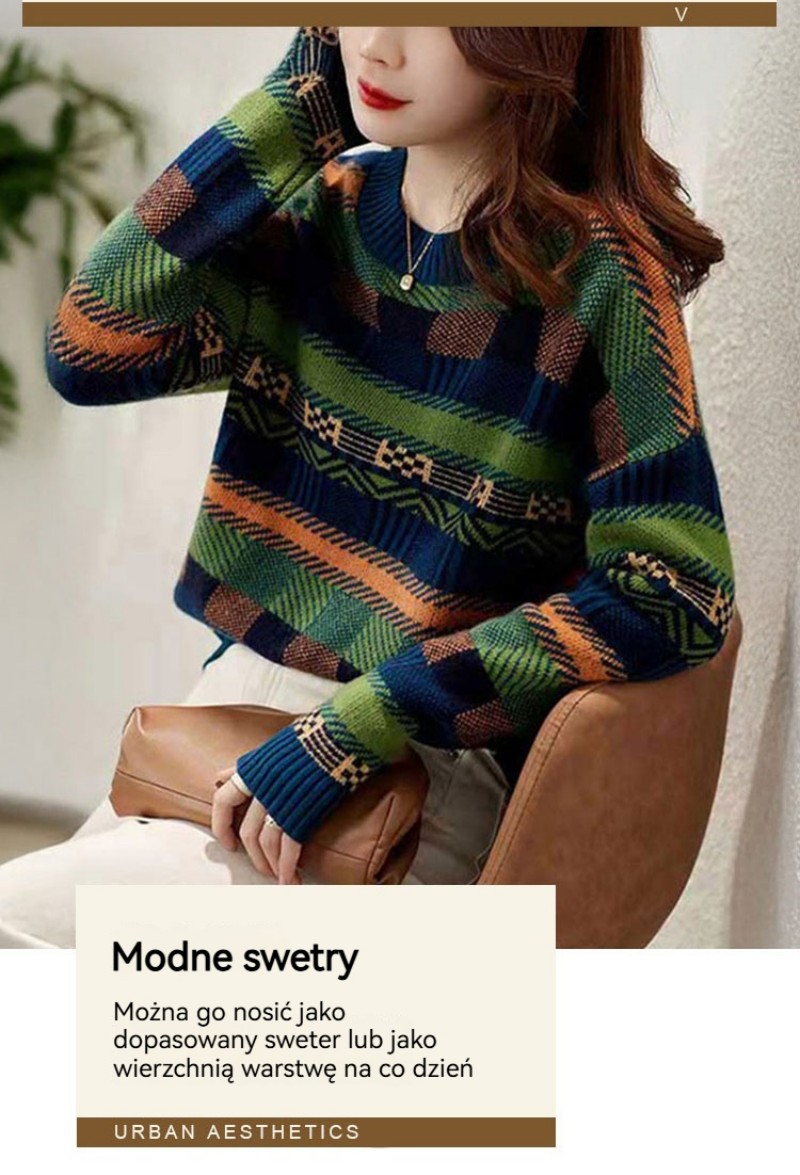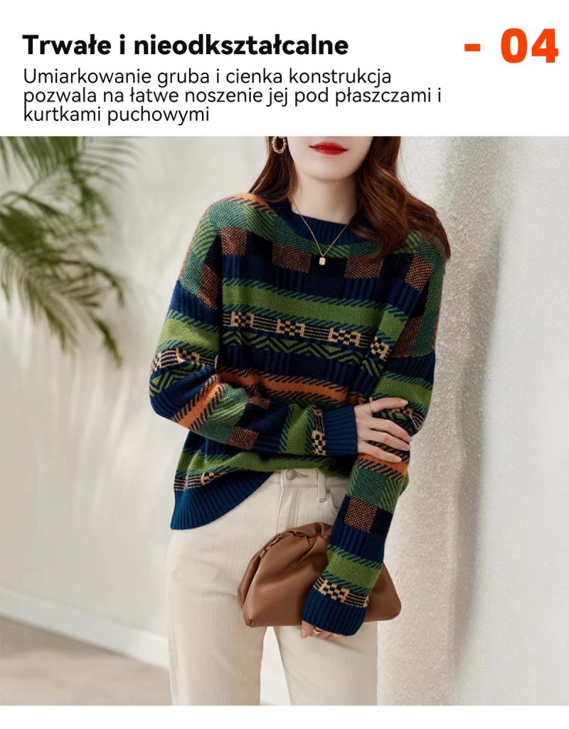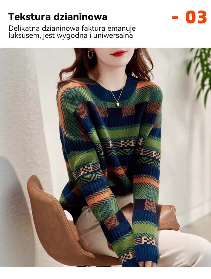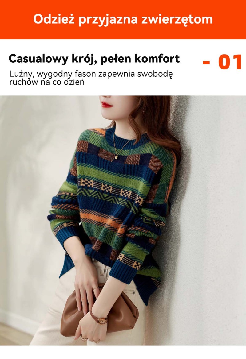 🌷【S-XL】Nowy model 2026, damski pasiasty sweter dzianinowy w kontrastowych kolorach