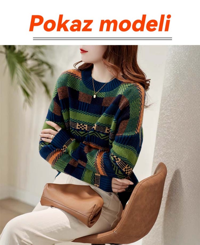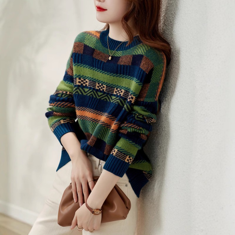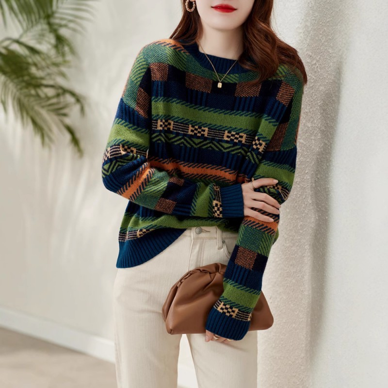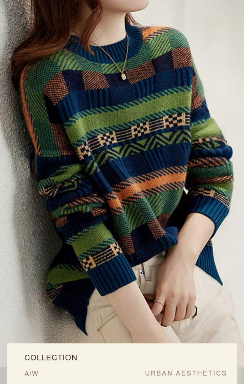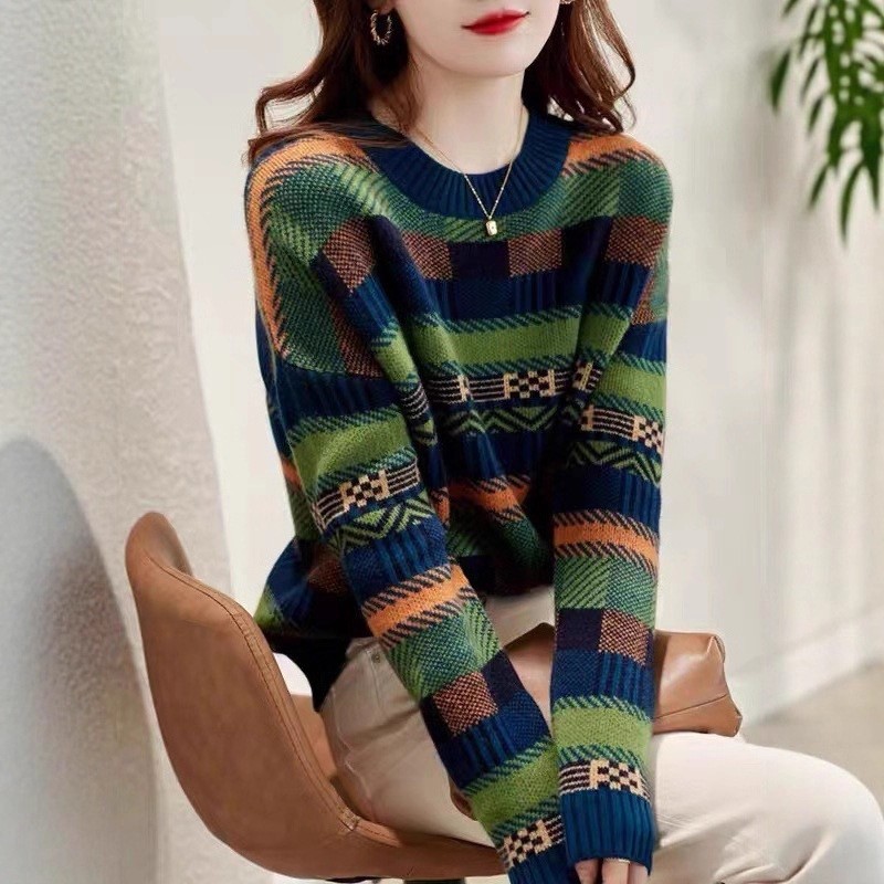 🌷【S-XL】Nowy model 2026, damski pasiasty sweter dzianinowy w kontrastowych kolorach