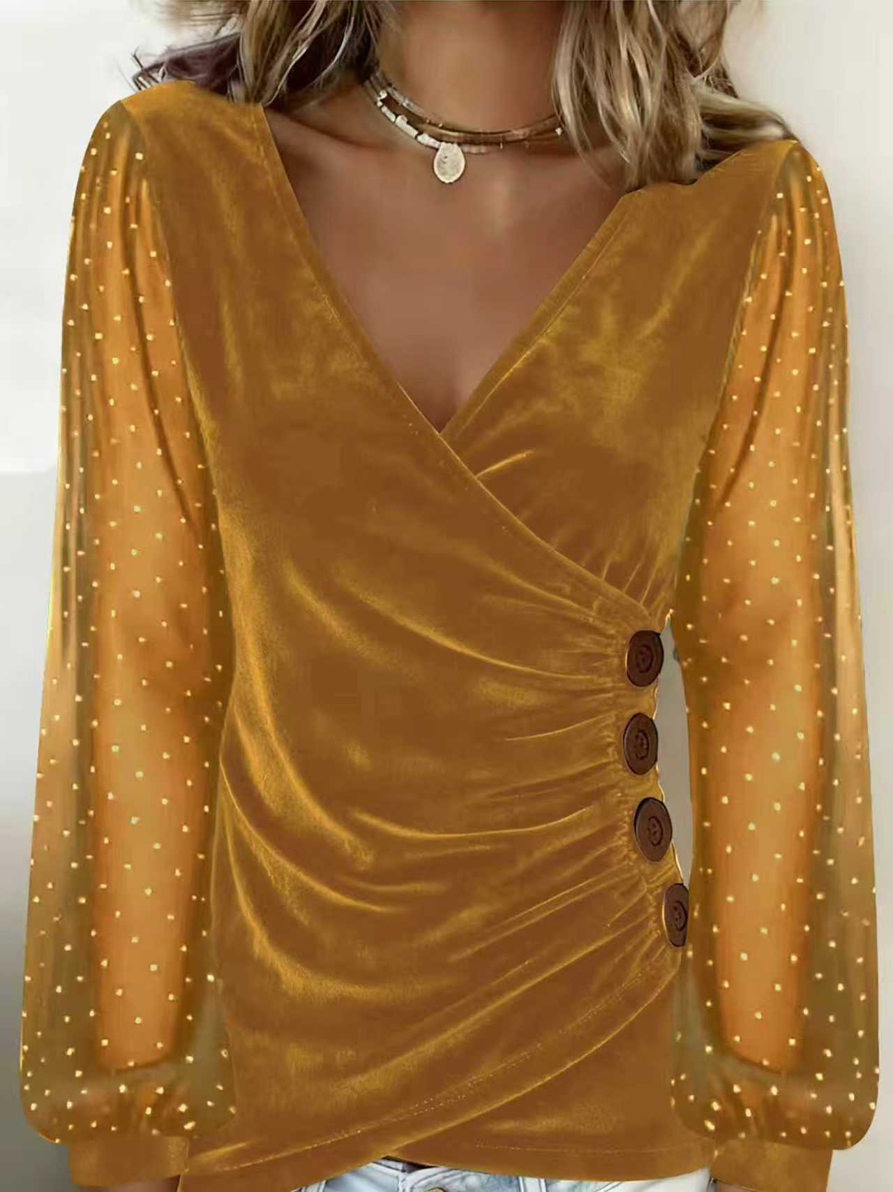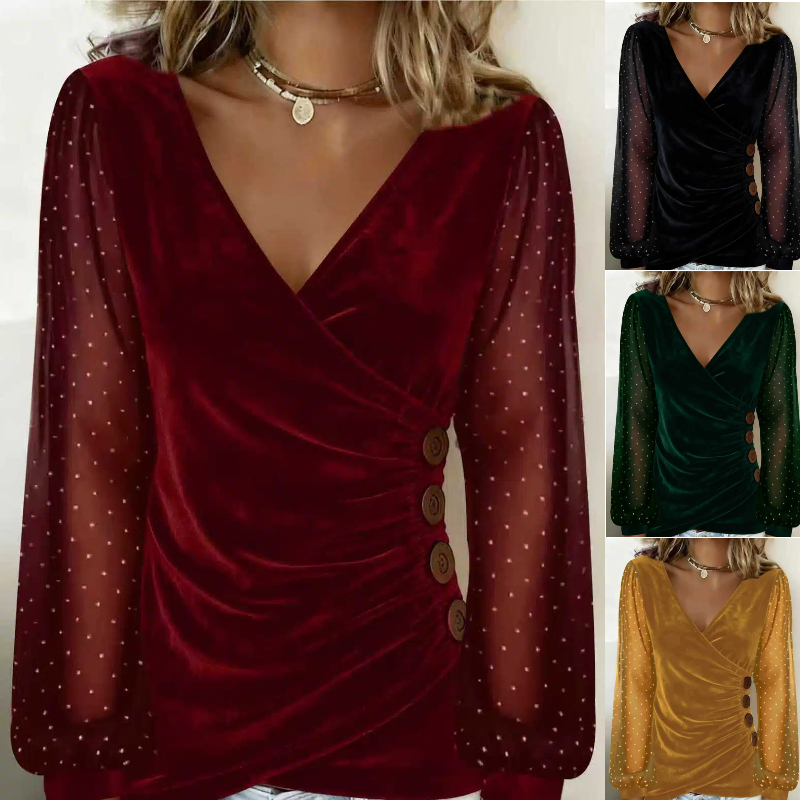 【S-5XL】Moda Wiosna/Lato 2026: Rękawy zdobione kryształkami, aksamitna elegancja, dopasowany krój, długi rękaw